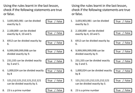 Answers for the worksheet on divisibility rules are given below.